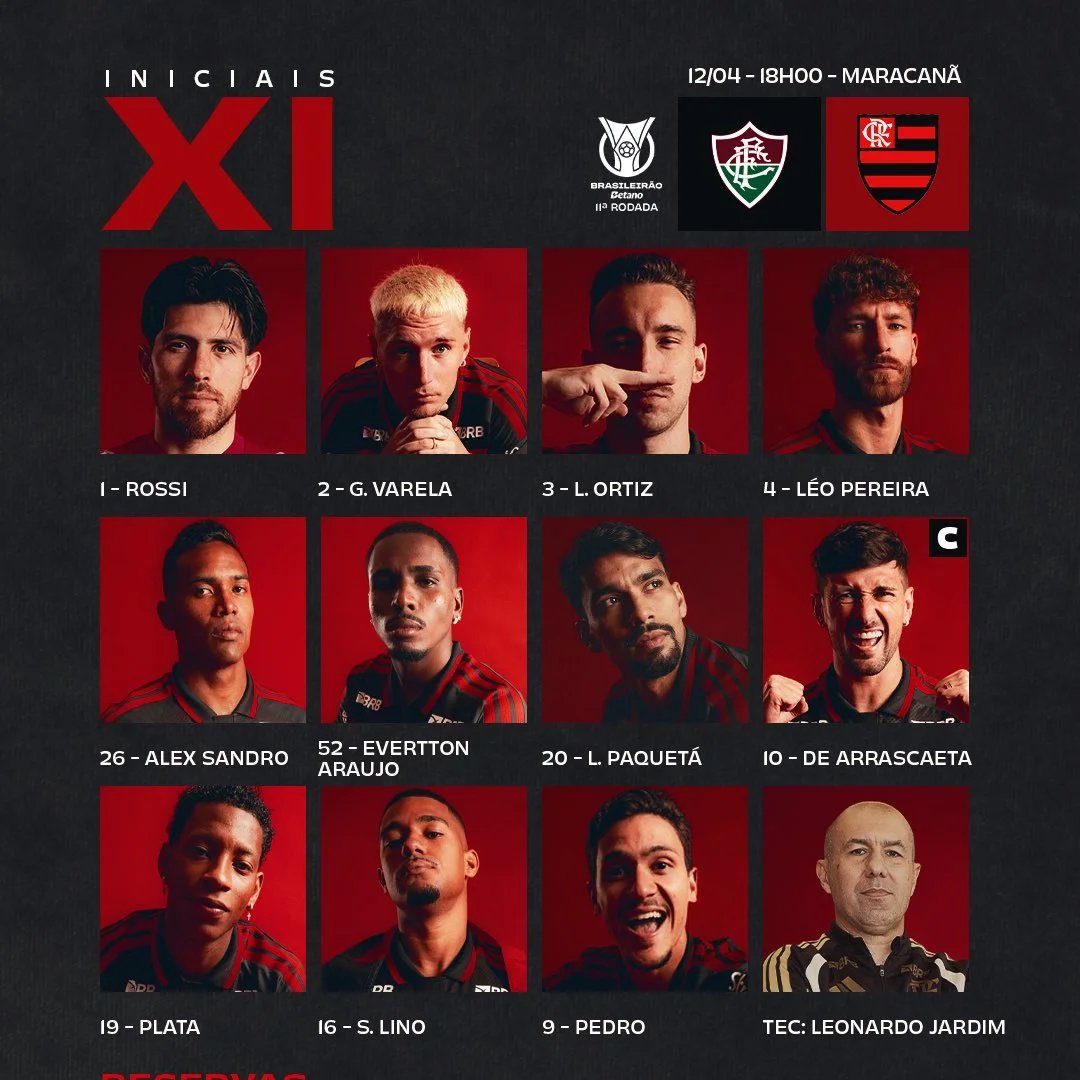 O Flamengo definiu a formação que iniciará o clássico contra o Fluminense neste domingo (11), às 18h, no Maracanã, pela 11ª rodada do Campeonato Brasileiro. O técnico Leonardo Jardim promoveu ajustes após a partida da Libertadores e optou por um time com meio-campo reforçado e atacantes de velocidade.